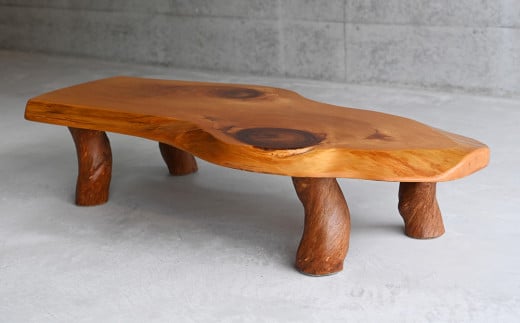 7. 桧 赤ふし台 ひのき 花台 盆栽台 一枚板 ふしあり 天然木 脚付き テーブル 国産 日本製