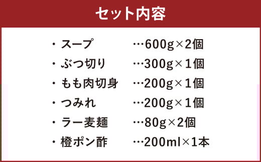 はかた地どり 水炊き セット 3~4人前 博多 地鶏 鍋 鶏ガラ スープ ぶつ切り もも肉切身 つみれ ラー麦麺 橙ポン酢 福岡県