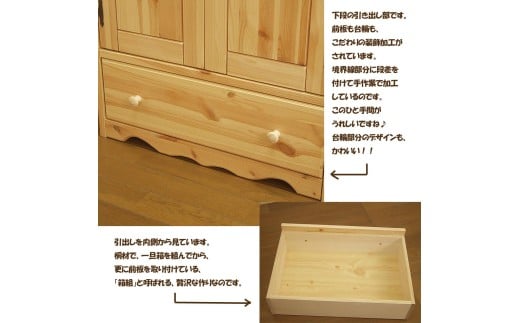 引出しには湿気対策バッチリの桐材を採用。台所周りでも安心してご使用できます。