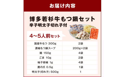 博多若杉牛もつ鍋4~5人前セット辛子明太子切れ子500g付【024-0029】