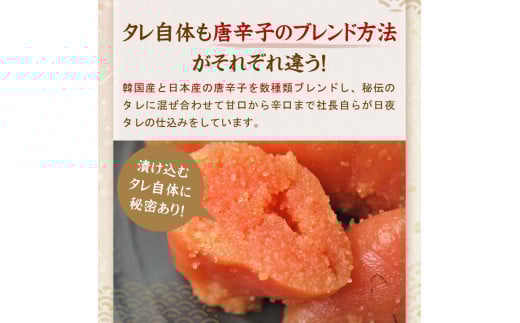 地酒と特製辛子ダレにさっぱりと漬け込み、素材の味を生かした無着色辛子明太子。
