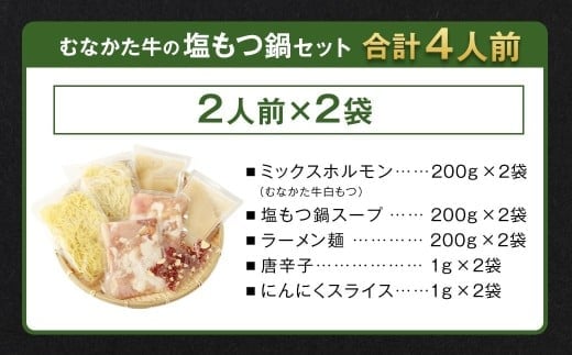 お米で育てた「むなかた牛」 塩もつ鍋セット(2人前×2セット)牧場直送【道の駅むなかた】_HA1456