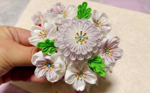 M551 【つまみ細工の髪飾り 淡桜】つまみ細工 髪飾り 絹100% 成人式 七五三 結婚式 花 水引 絹 寿 淡桜 桜 花 Uピン式 ヘアアクセサリー フラワー ピンク 振袖向け 卒業式 和装 着物 アレンジ自在