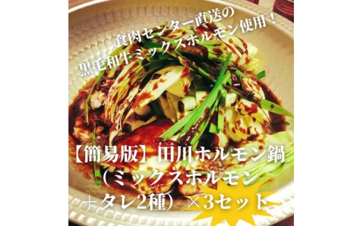 <簡易版>ぷりぷり黒毛和牛ホルモン使用!田川ホルモン鍋セット(ミックスホルモン+タレ2種)×3食分【1642363】