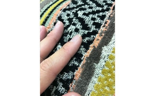 ヨーロッパのトルコで織られた高級感のあるシェニールの生地を使用しています。明るい色目の生地ですのでお部屋の雰囲気が変わります。裏面には温かいフランネルの生地を使用しています。お洗濯の際は手洗いをしてください。