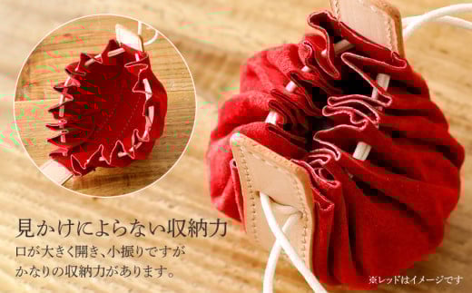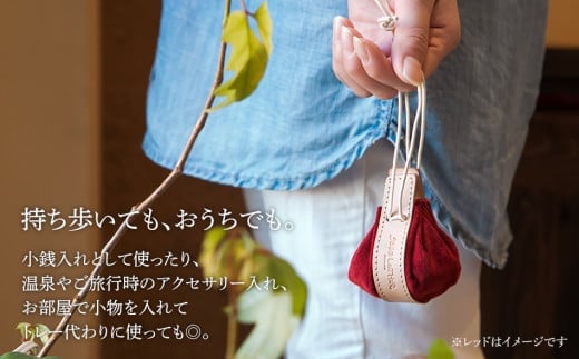 本革専門店が作る巾着型小物入れ。小銭入れとして使ったり、温泉やご旅行時のアクセサリー入れ、ご自宅の小物トレーとして使っても◎。小振りだけどかなりの収納力があります。大切なアクセサリー類も本革が優しく包み込み安心で、小さな指輪やピアスなどの紛失防止にも活躍します。