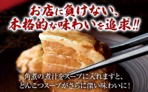 1人前115gの厚切り角煮付き。具だくさんの博多ラーメン
