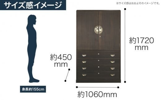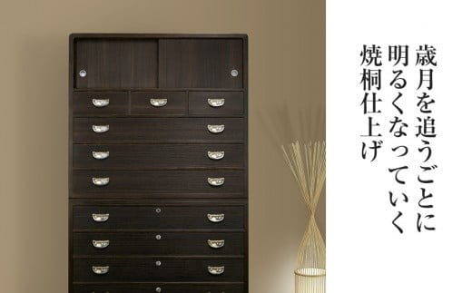 【数量限定】【残り1点】「誉(昇箪笥)焼桐」 【経年変化を楽しめる伝統家具】 歳月を追うごとに明るくなっていく焼桐仕上げ 職人による、手作り・手仕上げの工場よりお届け/総桐箪笥和光 ZZ034
