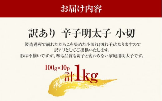 形は不揃いですが、味も品質も切子と変わらない家庭用明太子です。