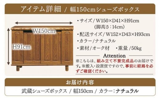 武蔵(ムサシ)幅150L シューズボックス(NA)【北海道・東北・沖縄・離島不可】CN088