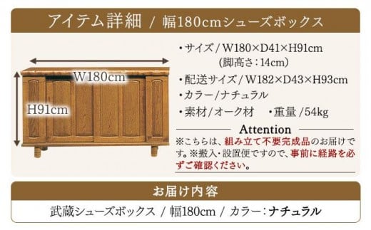 武蔵(ムサシ)幅180L シューズボックス(NA)【北海道・東北・沖縄・離島不可】CN091