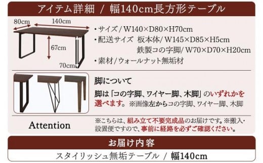 テーブルの脚はコの字脚、ワイヤー脚、木脚のいずれかをご選択ください。