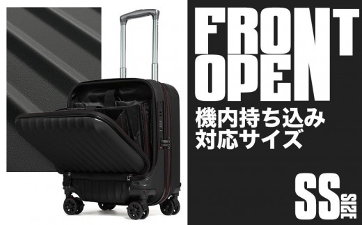 [PROEVO-AVANT]フロントオープン スーツケース 機内持ち込み対応 ストッパー付き SS(エンボス/ブラック) [10005S] AY188-bk
