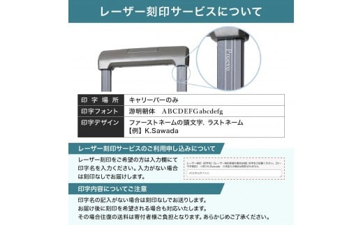 レーザー刻印サービスを行っています。ご希望の方は、お申込前に「備考」より、ご希望のローマ字表記をご入力くださいませ。