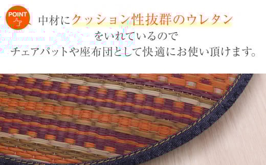 国産のい草と国産のデニムを組み合わせたこだわり商品です。中材にもクッション性抜群のウレタンをいれているのでチェアパットや座布団として快適にお使い頂けます。