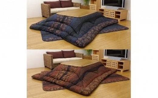 7. 和モダン柄こたつ布団セット (万葉)(205×205)(ブラウン) AA127