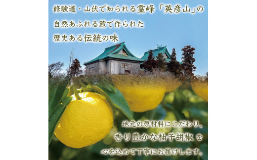 英彦山の山伏の子孫が、地元の自社農園と契約農家さんの一つ一つ手摘みした厳選の柚子と唐辛子を伝統的な製法で柚子胡椒にしています。自然の恵みのこだわりぬいた柚子の風味をぜひご堪能ください。多くのリピーターに長く支持される人気の品です。会社などで分けられる40本セットにしています。心を込めて全国の皆様へお届け致します。