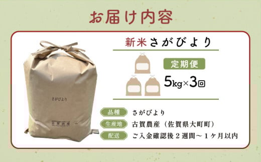 令和7年産 さがびより 5kg×3回定期便 /米 お米 返礼品 飯 ごはん 弁当 銘柄米 白米 県産米 佐賀県産 国産米 精米 ブランド米 おにぎり 国産 食品 人気 おすすめ ふるさと納税米 新米 精白米 主食 ご飯