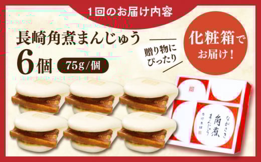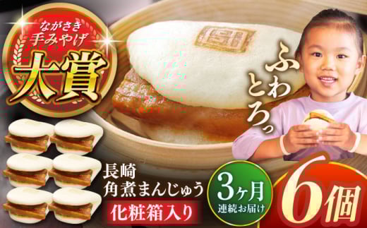 【全3回定期便】長崎角煮まんじゅう6個【株式会社岩崎食品】 [QBR022]角煮 かくに 角煮まん 長崎 角煮まんじゅう 岩崎 岩崎本舗 長崎 名産品 特産品 レンジ 簡単 調理 大人気 おすすめ 冷凍 保存 包装 小分け 温めるだけ / 長崎県 佐々町