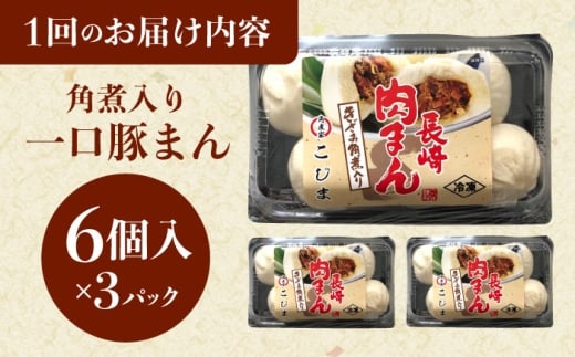 7. 【3回定期便】角煮入り一口豚まん6個り×3セット [QAX057]
