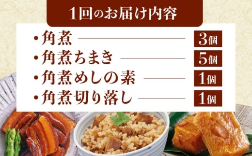 【6回定期便】【角煮バラエティーセット】角煮3個・ちまき5個・角煮めしの素1個・角煮切り落し1個 [QAX088]