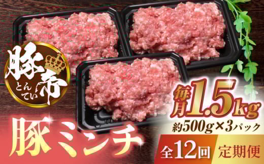 【12回定期便】豚帝ミンチ 1500g(500g×3pc)【KRAZY MEAT(小田畜産)】 ミンチ ポーク ぶた 豚 ブタ 肉 熊本 国産 九州 [ZCP096]