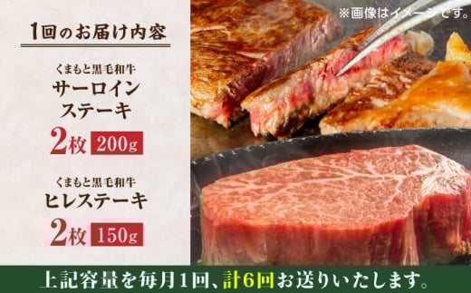 【6回定期便】くまもと黒毛和牛 ステーキ食べ比べ ヒレステーキ×2枚 サーロインステーキ×2枚【馬刺しの郷 民守】 食べ比べ セット 霜降り ステーキセット [ZBL086]