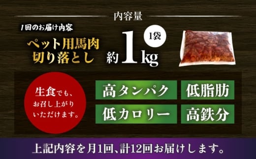 【全12回定期便】国内加工 ペット用 馬肉 切り落とし 1kg 【合同会社 長岡フーズ】 [ZFR056]