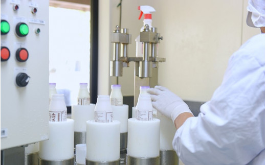 自社牧場のジャージー牛乳を、黒川温泉内の小さな加工場で製造しています。