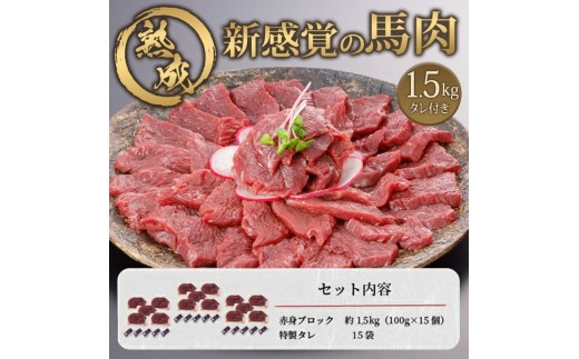 【令和7年12月出荷分】厳選 馬肉 赤身 1500g 1.5kg 特許製法 氷温熟成 低温調理 加熱済 馬赤身 赤身肉 新感覚 焼いたらもっと美味しい 旨みたっぷり 小分け 専用醤油 タレ付 真空パック 熊本 阿蘇 小国町