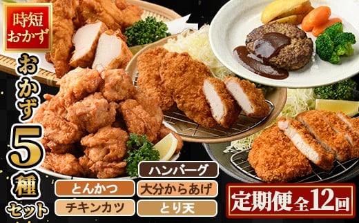 <定期便・全12回(毎月)>下ごしらえ済み おかず5種セット (5種・合計2.3kg×12回) からあげ 唐揚げ とり天 チキンカツ とんかつ ハンバーグ 冷凍 惣菜 お弁当 簡単 時短 定期便【DH314】【ネクサ】