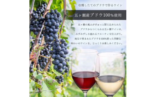 五ヶ瀬町産ブドウ100%使用した、柔らかな酸味と渋みが調和したメルロー主体の飲みやすい赤ワインです。