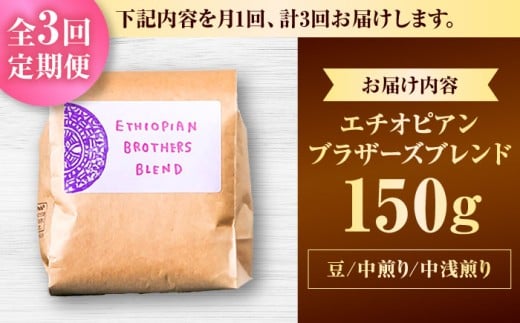 【全3回定期便】【豆のまま】豆ポレポレオリジナルブレンド エチオピアンブラザーズブレンド 150g コーヒー豆 珈琲豆 ブレンド ギフト 沖縄市 / 豆ポレポレ [BCAW019]