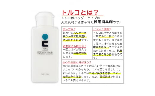 靴の消臭剤 トルコ 1本 消臭剤 消臭 靴 くつ 日用品 消耗品 抗菌 抗菌消臭剤 抗菌剤 ホタテ 帆立 天然素材 天然素材100% エチケット 臭い消し 匂い消し ニオイ消し 靴の臭い消し 靴の匂い消し 靴のニオイ消し パウダータイプ Tolco 国産 送料無料 千葉県 旭市 鈴木商工株式会社 ssk001