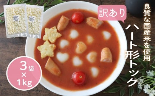 訳あり 業務用ハート型トック 1kg×3袋 トック 韓国 韓国料理 鍋 スープ 使い切り アレンジ 野菜 餅 人気 おでん お雑煮 お雑煮 おでん シチュー 国産米使用 モチモチ 歯ごたえ 簡単 良質 溶けにくい 崩れにくい 伸びない 柔らかい 業務用 千葉県 旭市 大新食品株式会社 dss022