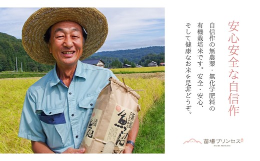 プレミアム玄米 5kg 令和7年産 新米 魚沼産 コシヒカリ 苗場プリンセス コットン袋入り | ブランド米 玄米 げんまい 米 こめ お米 おこめ 有機JAS認証米 新潟県 津南町