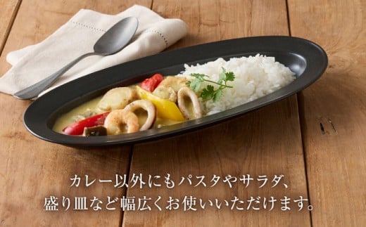細長い楕円形でほどよい深さ。miyama.のカレーのうつわ