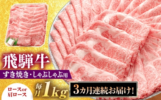 【3回定期便】 飛騨牛 ロースまたは肩ロース すき焼き しゃぶしゃぶ 両用 1kg 瑞浪市 / 養老ミート 冷凍 スライス 和牛 ギフト [AZDB047]