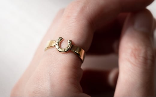馬蹄をしっかりと楽しめる太めの真鍮リングです。中心にかけて少し細くなっているため存在感がありながらもすっと指に馴染むデザインとなっています。