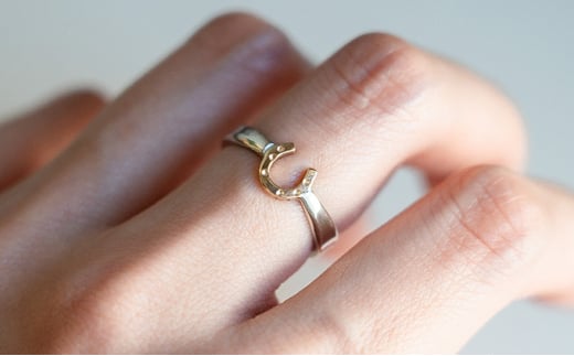リングはシルバー、馬蹄部分には14kgfを用いてやわらかくもアクセントあるデザインに仕上げました。シルバーとゴールドどちらの風合いも活かしながら、繊細さと華やかさを大切に制作しています。