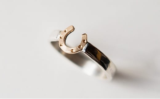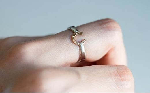 リングはシルバー、馬蹄部分には14kgfを用いてやわらかくもアクセントあるデザインに仕上げました。シルバーとゴールドどちらの風合いも活かしながら、繊細さと華やかさを大切に制作しています。