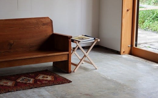 神事などに使われる日本古来の椅子をベースにつくられた折りたたみイスです。