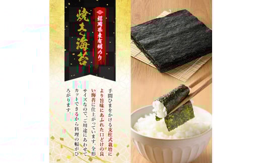 有明海産の海苔のなかでも、甘く、香り高く、口どけの良さにこだわった焼き海苔です。