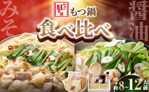 博多もつ鍋の醤油味と味噌味の食べ比べセット。合計8〜12人前