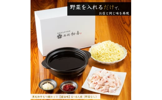 黒毛和牛 もつ鍋セット 4〜6人前 醤油味 【野菜なし】 吉富町/西新初喜 [BGAK004] 福岡県