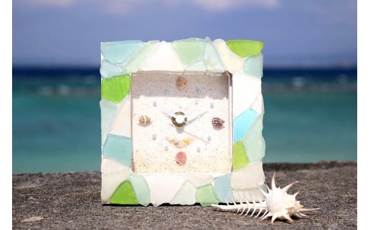 「シーグラスクロック」「シェルフォトフレーム」セット【沖縄の海からの贈り物】| 時計 写真 雑貨 クラフト 工芸 人気 おすすめ 送料無料 恩納村 沖縄