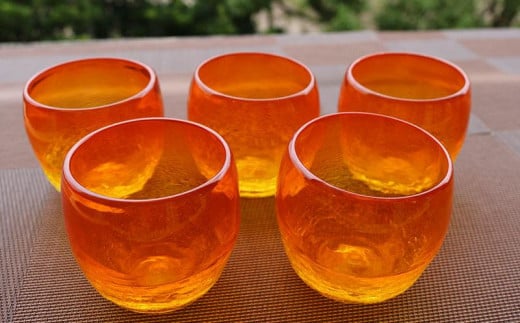 『現代の名工』宮国次男作 琉球ガラス<グラス5個セット>オレンジ