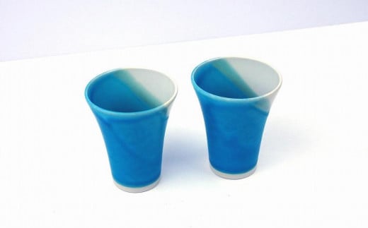【青風窯:玉田 彰作】海彩(うみいろ)フリーカップ(細)2個 セット