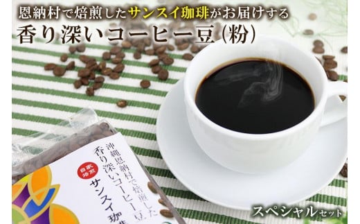 香り深いコーヒー豆【粉】200g×6種類 スペシャルセット 恩納村で焙煎したサンスイ珈琲がお届け!