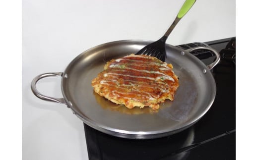 *浅型なのでフライ返し(ターナー)やヘラで食材をひっくり返すのも簡単!!